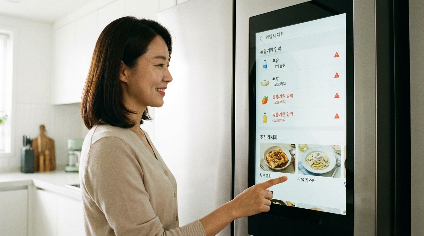 - 임박 알림: 유통기한이 3일 정도 남으면 "우유의 기한이 얼마 남지 않았습니다"라고 브리핑해 줍니다. 한국 아파트의 바쁜 아침, 장보러 가기 전 스마트폰으로 냉장고 안을 실시간 확인(Inside View)할 수도 있죠.