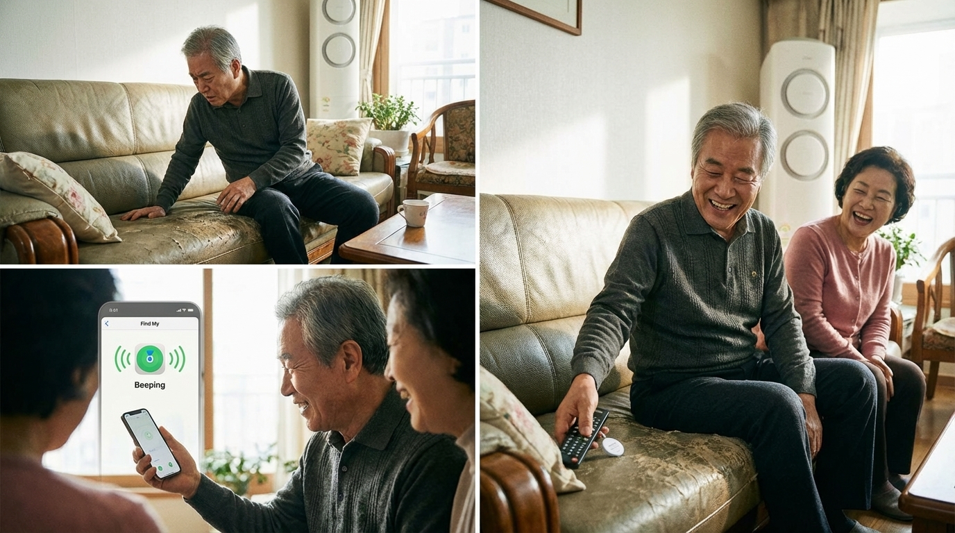 부모님 댁에 가면 꼭 한 번은 하게 되는 일, 바로 리모컨이나 열쇠 찾기입니다. 눈이 침침해진 부모님께 검은색 리모컨은 소파 그림자에 가려지면 보이지 않는 '투명 인간'과 같죠. "나이가 들어서 자꾸 깜빡한다"며 속상해하시는 부모님께 필요한 건 꾸중이 아니라 소리 내서 자기 위치를 알려주는 똑똑한 이름표입니다.