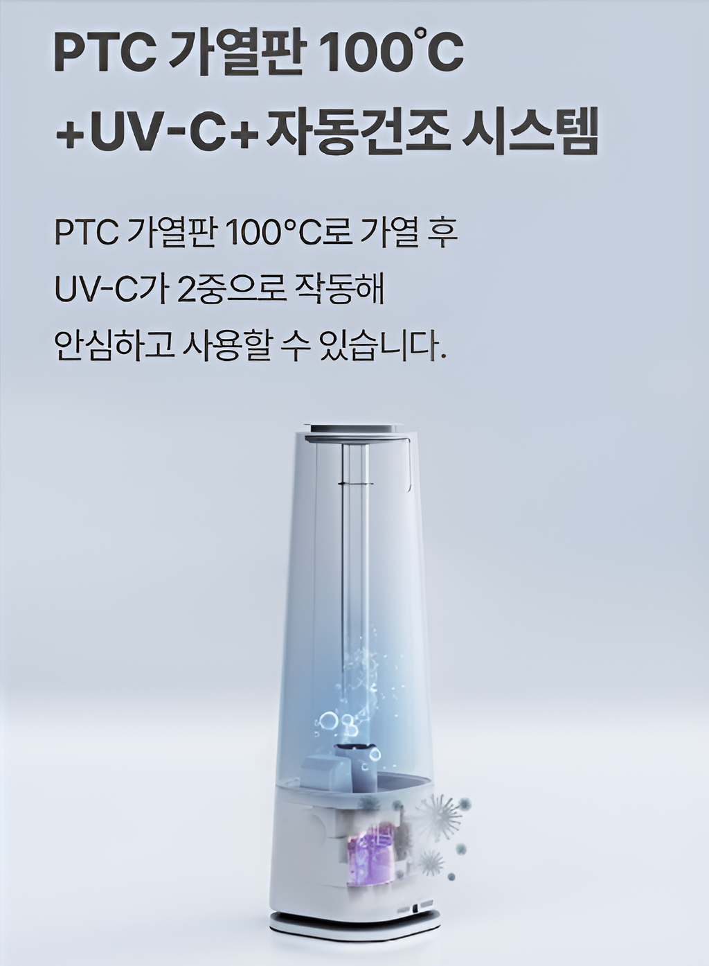 2. ⚡ 'UV 살균' 또는 '가열 살균' 기능 유무 (세균 원천 차단)