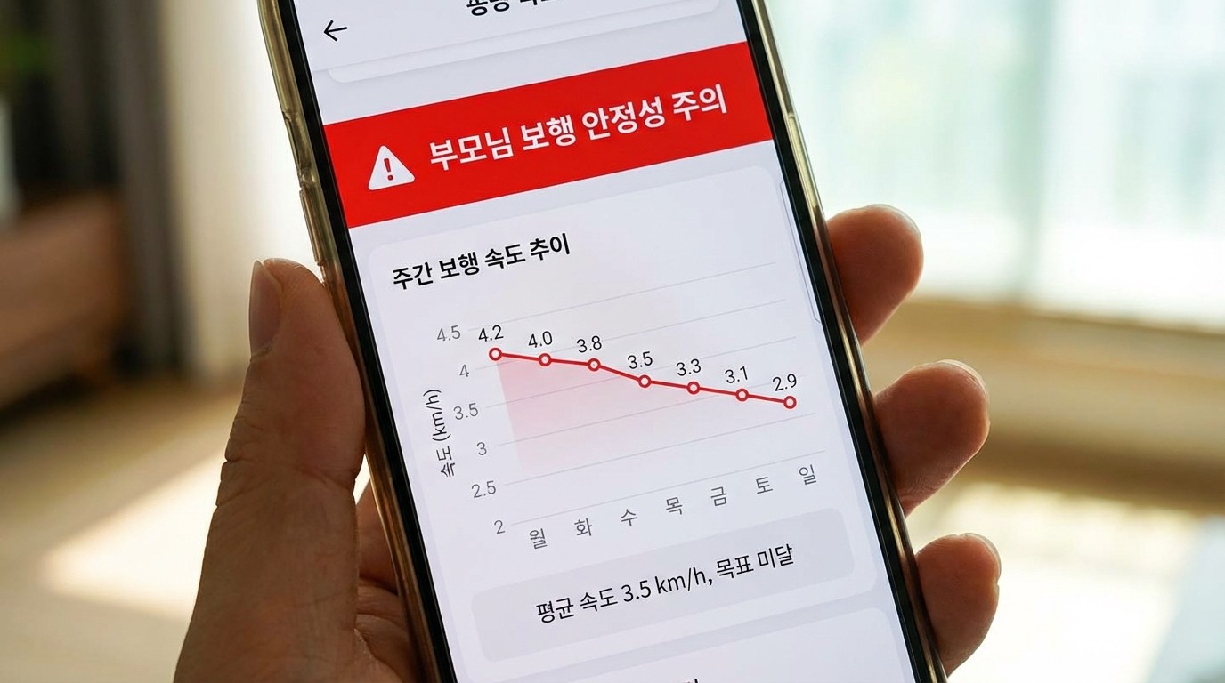 - 스마트 워치 활용: 부모님 손목의 스마트 워치는 매일 걸음 수뿐만 아니라 '보행 안정성' 데이터를 기록합니다. 자녀의 폰으로 이 데이터를 공유받으세요.